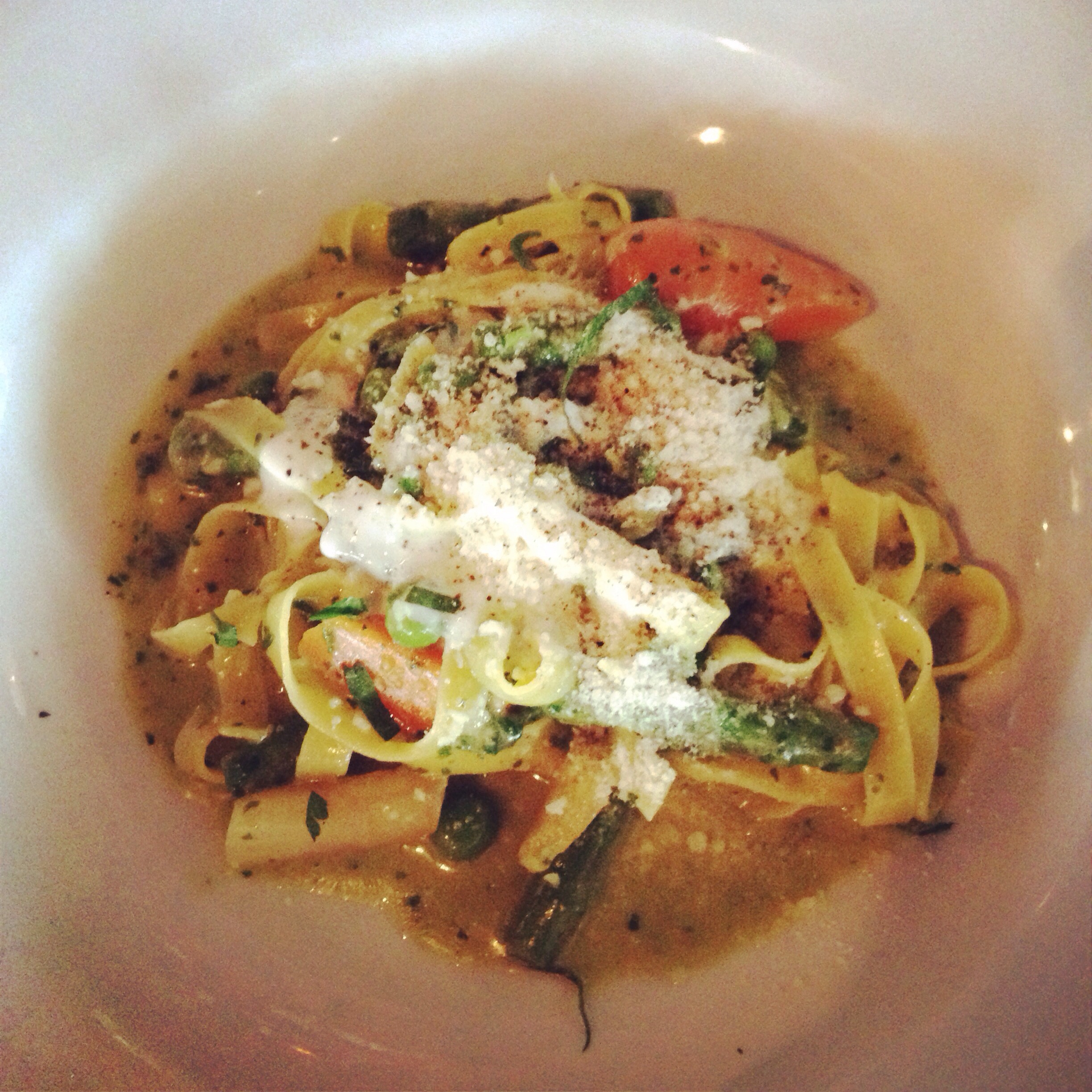 I was at the Village Social in Mt. Kisco last week and had this scrumptious spring special: primavera with pesto. Jumping for joy, there was finally something vegetarian on the specials menu. It was packed with flavor. The vegetables were crisp, and the pesto creamy but not overpowering. It wouldn’t be a complete meal if I didn’t sprinkle it with a heaping spoonful of Parmesan cheese. Hopefully this dish will become a staple on their seasonal menu.